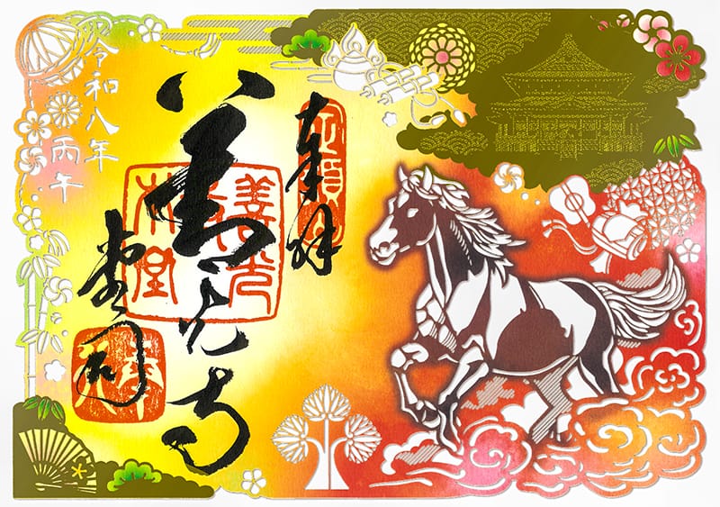 令和八年の干支である午(馬)に由来した見開きの切り絵御朱印。